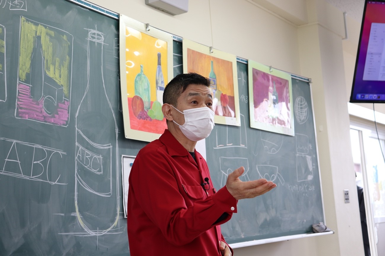 開始時間となり、会場となる郡山西中学校の美術教室に磯部氏が登壇。