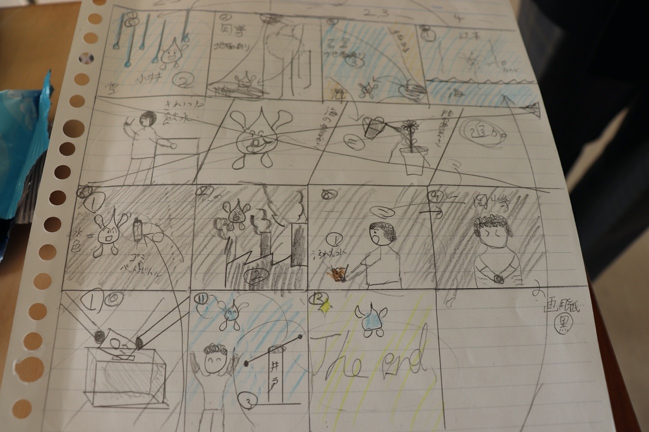 事前に生徒達はキャラクターの設定表やストーリーボードを用意。