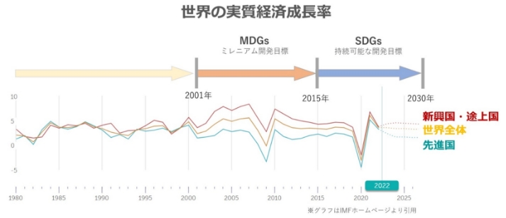 ところが、2021年に国連で採択されたMDGsという国際社会の取り組みによって、途上国の成長率が先進国より高まり、世界平均を越えていくことが可能になりました。